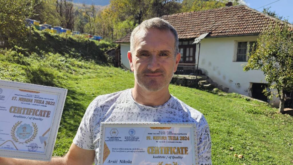 Међу учесницима из чак 23 земље из региона и света, на Међународном сајму пчеларства, који је почетком септембра одражан у Тузли, мед са Шаре кога призводи Никола Арсић већ четврти пут добија прву награду за квалитет. Тајна за успех је љубав и преданост према послу мада, како наглашава, и поднебље игра значајну улогу.