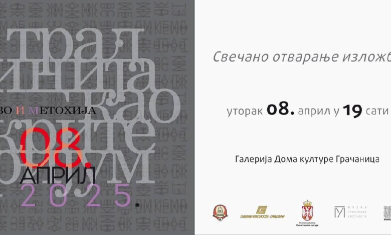 Изложба ,,Традиција као критеријум – Косово и Метохија“ Удружења ликовних уметника примењених уметности и дизајнера Србије (УЛУПУДС-а), биће отворена 08. априла 2025. године у 19 часова у Галерији Дома културе Грачаница, најавили су организатори.