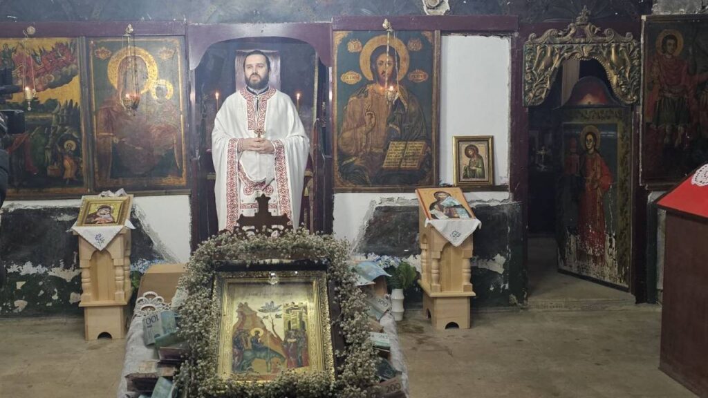 „Ја по годинама то не могу да будем, али Богу хвала у селу имам унуке који ће бити тај мали запатак за обнову и васрксење нашег народа“, поручује Саша Јоцић из Бањске који је на празничну литургију доша са унуцима.